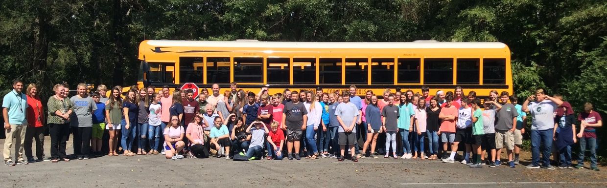 Iuka Middle School 5th graders arrive at The Little Church to experience The Boomer Years.
